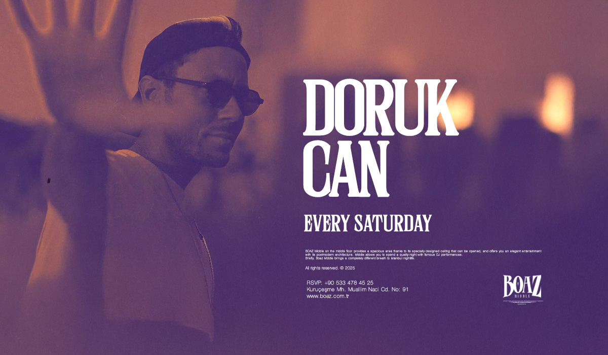 Boáz Middle, özenle kurgulanan konsept partileriyle farklı temalar etrafında şekillenen sofistike gecelere imza atar.